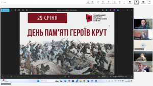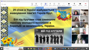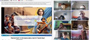 У П'ятигірському ліцеї Донецької селищної ради Ізюмського району Харківської області відбулися онлайн-заходи до Дня пам’яті Героїв Крут — дня, що нагадує про неймовірну мужність, відвагу та самопожертву української молоді. Під час дистанційних зустрічей учні з глибокою повагою ознайомилися з подіями бою під Крутами, дізналися про подвиг юних героїв, які, не шкодуючи власного життя, стали на захист незалежності України. У форматі бесід, перегляду відеоматеріалів та обговорень здобувачі освіти уважно слухали, ставили запитання, ділилися думками й емоціями. Онлайн-спілкування проходило в атмосфері зосередженості, щирого зацікавлення та патріотизму. Такі заходи допомагають учням усвідомити ціну свободи, зберегти історичну пам’ять і виховують повагу до героїчного минулого нашого народу![]()