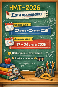 Основна сесія НМТ відбудеться з 20 травня до 25 червня 2026 року,