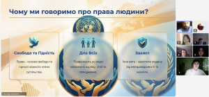У П'ятигірському ліцеї Донецької селищної ради Ізюмського району Харківської області відзначили Міжнародний день прав людини — важливу дату, що нагадує всім про цінність свободи, гідності й рівності кожної людини. Протягом дня для учнів були проведені інформаційні години, під час яких школярі дізналися про основні права дитини, їх захист та значення Загальної декларації прав людини. Здобувачі освіти переглядали тематичні відеоматеріали, аналізували реальні життєві ситуації, обговорювали, як важливо поважати права інших та відповідально ставитися до власних. Також вчителем правознавства Борисенком О.В. було організовано інтерактивні вправи та міні-дискусії, що допомогли старшокласникам краще зрозуміти, як діяти у випадках порушення прав та до кого можна звернутися за допомогою. Міжнародний день прав людини ще раз нагадав усім: права людини — це основа вільного та справедливого суспільства, а їх захист починається з нас самих.![]()